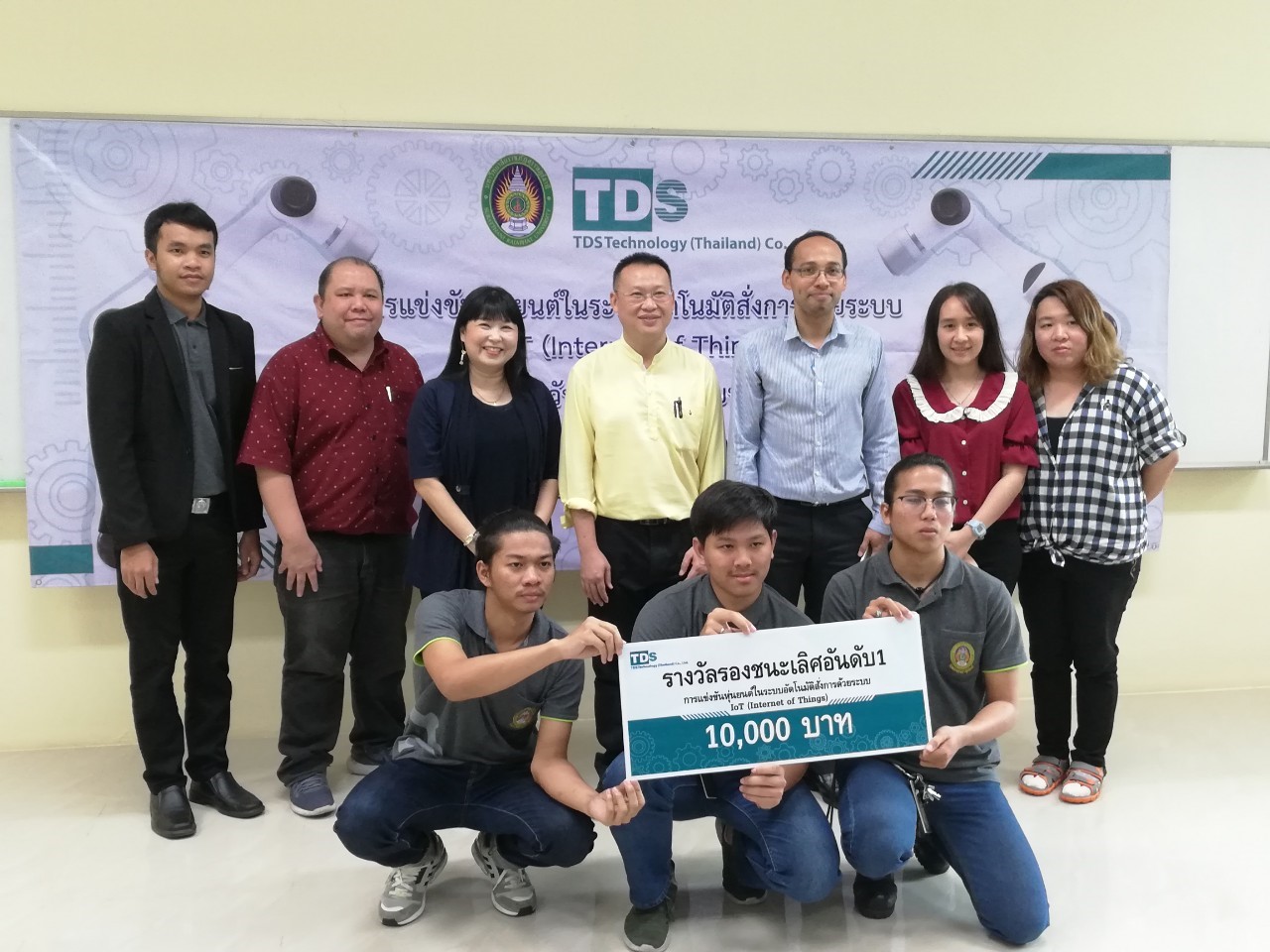 ภาพบรรยากาศการมอบรางวัลการแข่งขันหุ่นยนต์ ในระบบอัตโนมัติสั่งการด้วยระบบ IoT (Internet of things) โดยมีคุณวิญญู เลิศคำ ผู้จัดการทั่วไป จากบริษัท ทีดีเอส เทคโนโลยี (ประเทศไทย) จำกัด และ ผศ.สุรินทร์ สมณะ คณบดีคณะวิทยาศาสตร์และเทคโนโลยี มหาวิทยาลัยราชภัฏสุราษฎร์ธานี ร่วมมอบรางวัลให้กับผู้ชนะในการแข่งขันนี้ ณ มหาวิทยาลัยราชภัฏสุราษฎร์ธานี