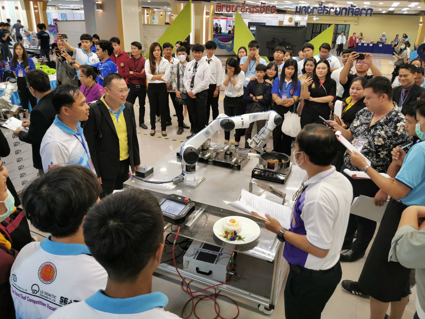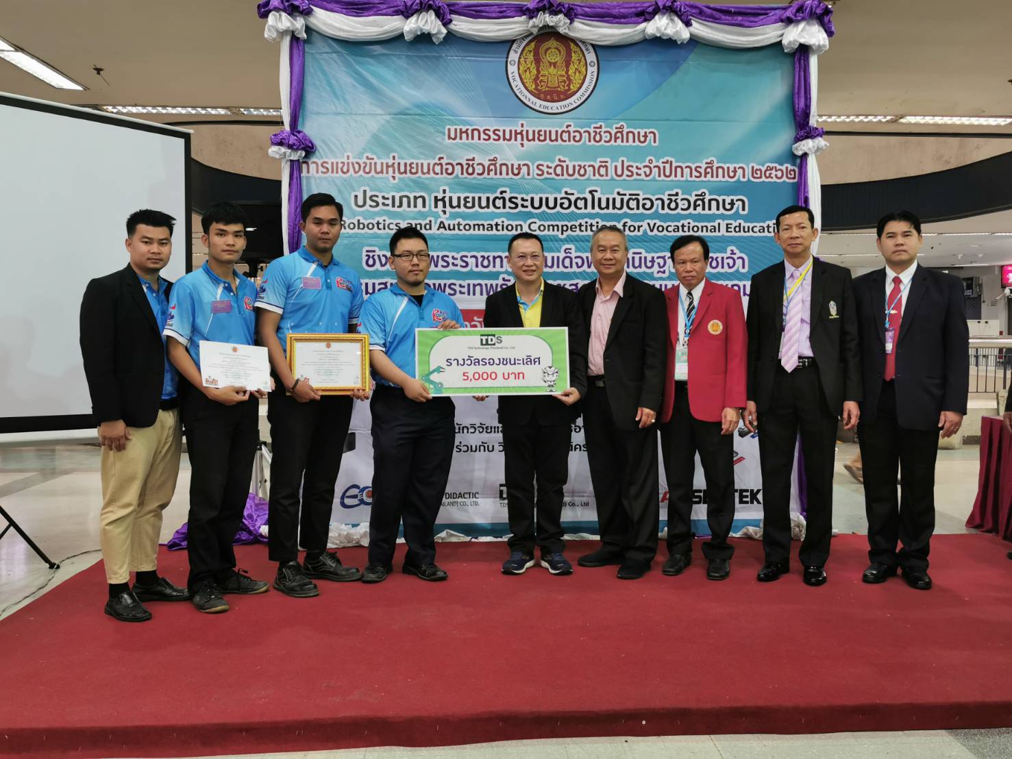 ภาพบรรยากาศการแข่งขันรอบชิงชนะเลิศและพิธีมอบรางวัลทีมที่ได้รับรางวัล ในงานการแข่งขันหุ่นยนต์อาชีวศึกษา ระดับชาติ ประจำปีการศึกษา 2562 ประเภทหุ่นยนต์ระบบอัตโนมัติ Automation System Robot และประเภทการแข่งขันหุ่นยนต์ประกอบอาหาร (ผัดกระเพราไก่-ไข่ดาว) ชิงถ้วยพระราชทานสมเด็จพระกนิษฐาธิราชเจ้า กรมสมเด็จพระเทพรัตนราชสุดาฯ สยามบรมราชกุมารี ในงาน "สุดยอดนวัตกรรมอาชีวศึกษา" โดยมี คุณวิญญู เลิศคำ ผู้จัดการทั่วไป บริษัท ทีดีเอส เทคโนโลยี (ประเทศไทย) จำกัด เป็นตัวแทนเข้าร่วมในพิธี ซึ่งบริษัทฯ เป็นผู้ให้การสนับสนุนชุดฝึกสำหรับการเพื่อใช้ในการแข่งขัน ในกิจกรรมทางด้านนวัตกรรมสิ่งประดิษฐ์ของคนรุ่นใหม่และหุ่นยนต์อาชีวศึกษา ระหว่างในวันที่ 6-9 กุมภาพันธ์ 2563 ณ ศูนย์การค้าเซียร์ รังสิต